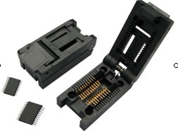 •结构优化设计,通用性强,适应各型号器件的放置和提取;•专用接触簧片,确保和器件接触良好;•接触簧片选用优质铜材,经良好的表面处理工艺,即保持弹性又具有很长的使用寿命;•紧凑的结构,减低成本和空间;•足够的镀金厚度确保长期使用接触良好;•高温塑料制造,能耐受潮湿的环境,最高使用温度可达155 ℃;•超短订货周期。APPLICABLE IC DIMENSIONS & SOCKET DIMENSIONS单位:mm