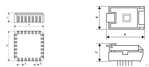 产 品 型 号 IC封装 a b c d e A B C 090-0127-280 LCC28 11.43±0.2 11.43±0.2 1.83±0.2 0.64±0.07 1.27 40.0 28.7 17.0DESCRIPTION & ORDERING INFORMATION