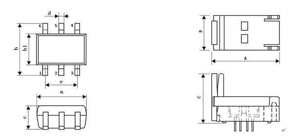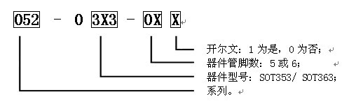 产 品 型 号 IC封装 a b b1 C D e A B C 052-0353-050 SOT353-5L 2.0±0.2 2.1±0.2 1.25 0.9±0.1 0.3±0.05 1.3 24.7 12.6 17.3 052-0363-060 SOT363-6L/SC70 2.0±0.2 2.1±0.1 1.25 0.9±0.1 0.3±0.05 1.3 24.7 12.6 18.0 052-0363-061 SOT363-6L/SC70 2.0±0.2 2.1±0.1 1.25 0.9±0.1 0.3±0.05 1.3 29.7 12.6 18.0DESCRIPTION & ORDERING INFORMATION