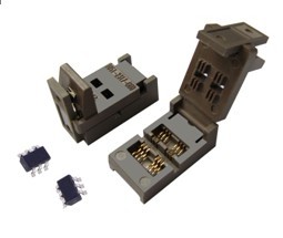 •翻盖设计,适应小体积器件的放置和提取;•专用接触簧片,确保和器件接触良好;•接触簧片选用优质铍铜,经良好的表面处理工艺,即保持弹性又具有很长的使用寿命;•接触簧片完全镀金,足够的镀金厚度确保长期使用接触良好;•双工位设计,减低成本增加空间利用率;•特种塑料制造,能耐受潮湿和高温环境,最高使用温度可达175 ℃。•超短订货周期。APPLICABLE IC DIMENSIONS & SOCKET DIMENSIONS单位:mm