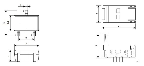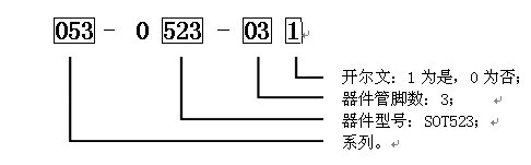产 品 型 号 IC封装 a b b1 c D e A B C 053-0523-030 SOT523-3L 1.6±0.1 1.6±0.15 0.8 0.68±0.1 0.3±0.05 1.0 24.7 12.6 18.0 053-0523-031 SOT523-3L 1.6±0.1 1.6±0.15 0.8 0.68±0.1 0.3±0.05 1.0 24.7 12.6 18.0DESCRIPTION & ORDERING INFORMATION