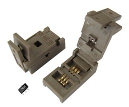 •翻盖设计,适应小体积器件的放置和提取;•专用接触簧片,确保和器件接触良好;•接触簧片选用优质铍铜,经良好的表面处理工艺,即保持弹性又具有很长的使用寿命;•接触簧片完全镀金,足够的镀金厚度确保长期使用接触良好;•双工位设计,减低成本增加空间利用率;•特种塑料制造,能耐受潮湿和高温环境,最高使用温度可达175 ℃。•超短订货周期。APPLICABLE IC DIMENSIONS & SOCKET DIMENSIONS单位:mm