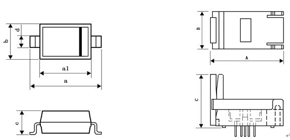 产 品 型 号 IC封装 a a1 b c d A B C 010-0123-020 SOD123 3.75±0.15 2.7±0.15 1.6±0.2 1.03±0.14 0.62±0.08 24.7 12.6 18.0 010-0323-020 SOD323 2.5±0.2 1.7±0.05 1.25±0.05 1.0±0.05 0.35±0.05 24.7 12.6 18.0 010-0523-020 SOD523 1.6±0.1 1.2±0.1 1.8±0.05 0.64±0.13 0.3±0.05 24.7 12.6 18.0DESCRIPTION & ORDERING INFORMATION