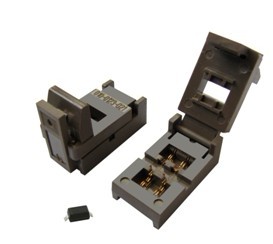 •翻盖设计,适应小体积器件的放置和提取;•专用接触簧片,确保和器件接触良好;•接触簧片选用优质铜材,经良好的表面处理工艺,即保持弹性又具有很长的使用寿命;•双工位设计,减低成本和空间;•足够的镀金厚度确保长期使用接触良好;•特种塑料制造,能耐受潮湿的环境,最高使用温度可达175 ℃;•超短订货周期。APPLICABLE IC DIMENSIONS & SOCKET DIMENSIONS单位:mm