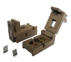 •结构优化设计,适应各型号器件的放置和提取;•专用接触簧片,确保和器件接触良好;•接触簧片选用优质铜材,经良好的表面处理工艺,即保持弹性又具有很长的使用寿命;•紧凑的结构,减低成本和空间;•足够的镀金厚度确保长期使用接触良好;•特种塑料制造,能耐受潮湿的环境,最高使用温度可达175 ℃;•超短订货周期。APPLICABLE IC DIMENSIONS & SOCKET DIMENSIONS单位:mm