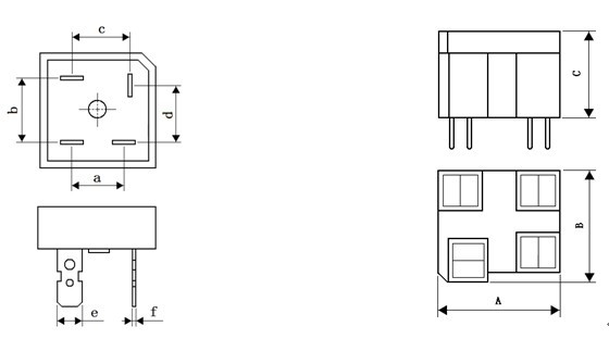 产 品 型 号 IC封装 a b c d e f A B C 003-0007-081 KBPC25/GBPC 14.3±0.5 18.0±0.5 16.2±0.5 16.2±0.5 6.3±0.06 0.8±0.03 28.0 25.7 20.0DESCRIPTION & ORDERING INFORMATION