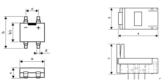 产 品 型 号 IC封装 a b b1 c d e A B C 003-0010-081 MINIBRIDGE 5.6±0.1 6.7±0.3 4.5±0.2 2.5±0.2 0.6±0.1 4.0 24.7 12.6 18.0 ABSDESCRIPTION & ORDERING INFORMATION