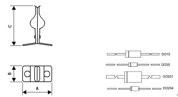 产 品 型 号 IC封装 A B C 003-0005-005 轴向二极管 15.0±0.02 8.2±0.2 20.6±0.2