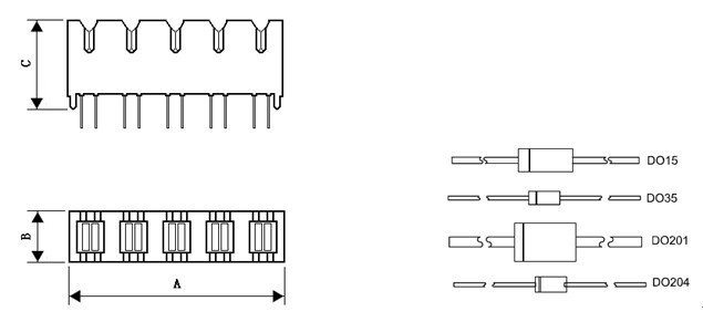 产 品 型 号 IC封装 A B C 003-0005-005 轴向二极管 38.0±0.02 9.0±0.2 15.5±0.2