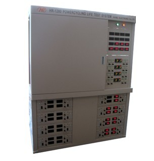 产品型号 HRV-01二极管全动态老化系统 HRV-02二极管全动态老化系统 系统特点 8通道,96工位(5A) 4通道,24工位(20A) 符合标准 符合MIL、GJB、JEDEC试验要求 器件保护方式 快速熔断保险丝 试验原理 正半周施加50Hz正向大电流,负半周施加50Hz反向高压,对被试器件进行全动态老化试验。 试验容量 试验通道 8个试验通道 4通道 试验容量 12位/通道 6位/通道 试验电源 电源种类 全动态专用电源 全动态专用电源 正半周电源 120A 120A 负半周电源 0~1000V 0~1000V 试验腔体 配置 8通道,老化板式,相互隔离 4通道,老化板式/散热器方式可选 散热 循环风冷 循环风冷/自然散热 驱动检测板 数量 8块 4块 IF 范围:0~6A,精度:2%±2LSB 范围:0~20A,精度:2%±2LSB IR 范围:1µA~10mA,精度:2%±2LSB 范围:1µA~10mA,精度:2%±2LSB VR 范围0~1000V;精度:2%±2LSB 范围0~1000V;精度:2%±2LSB 主控计算机 主机 计算机(可选配工控机) 显示屏 彩色液晶显示屏 软件界面 基于Widows XP界面,使用方便 数据记录 全程监测,表格(EXCEL)、曲线方式保存 报警 超限报警,时间点可查询 供电要求 AC220V单相,8KW 外形尺寸(W*D*H) 重量 约600Kg
